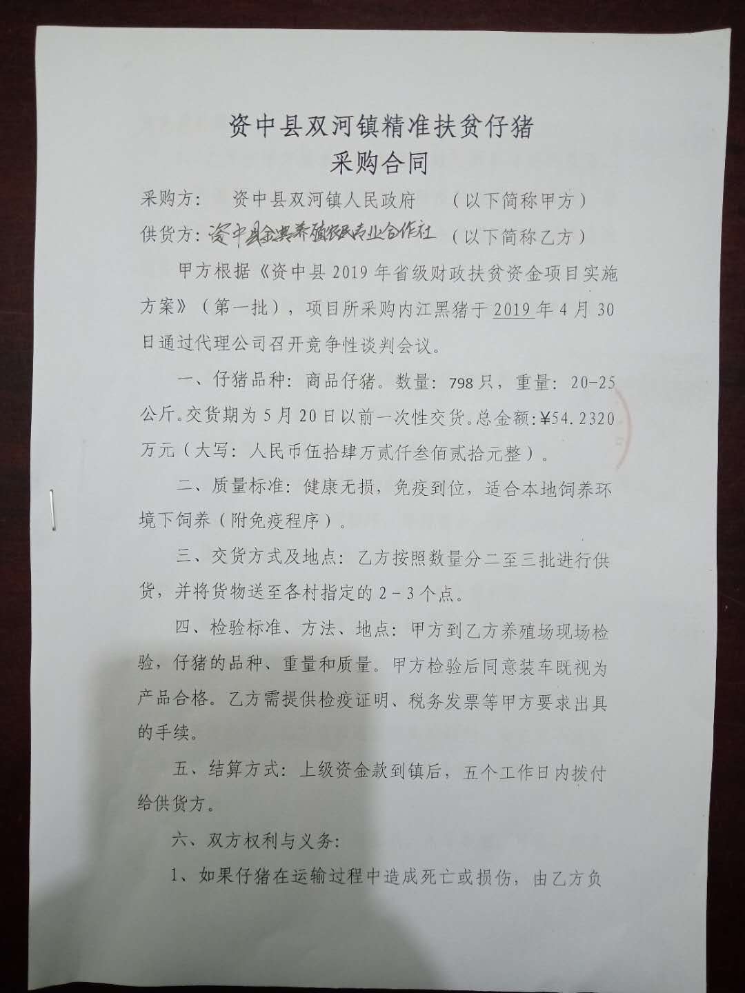 [合同备案]双河镇2019第一批中省财政扶贫专项资金(内江黑猪)