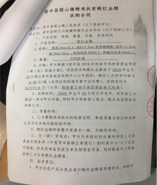 [合同备案]银山镇2019年省级财政专项扶贫资金项目(第二批)晚红血橙