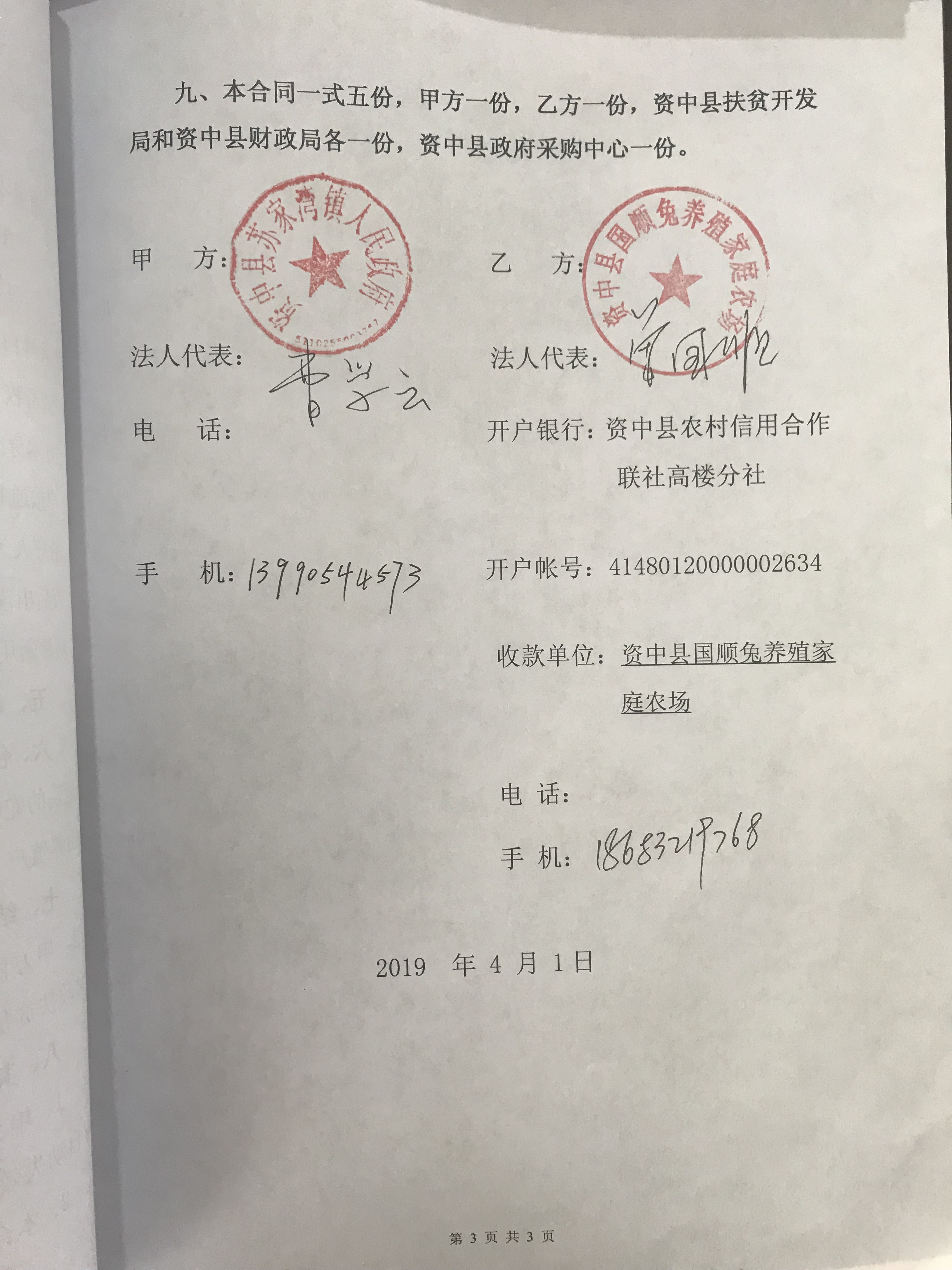 [合同备案]苏家湾镇2019年省级财政专项扶贫资金项目(第一批)大耳白兔种兔