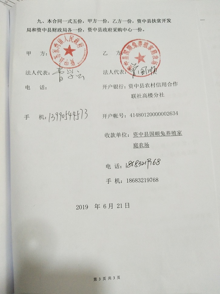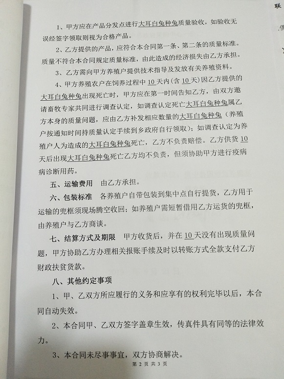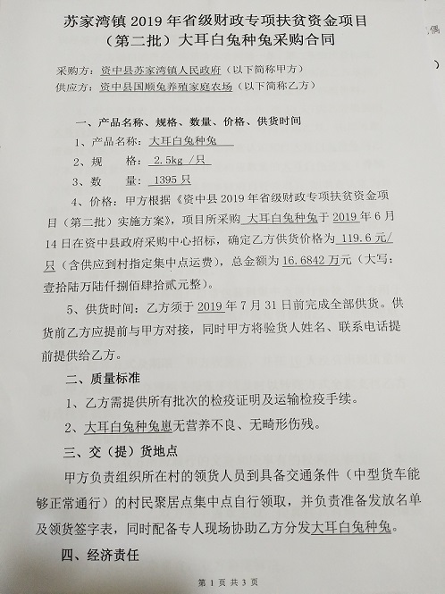 [合同备案]苏家湾镇2019年财政专项扶贫资金项目(第二批)大耳白兔种兔