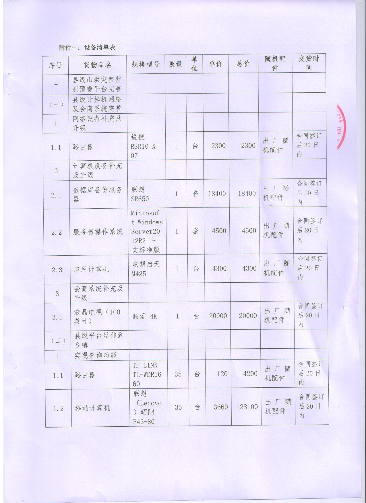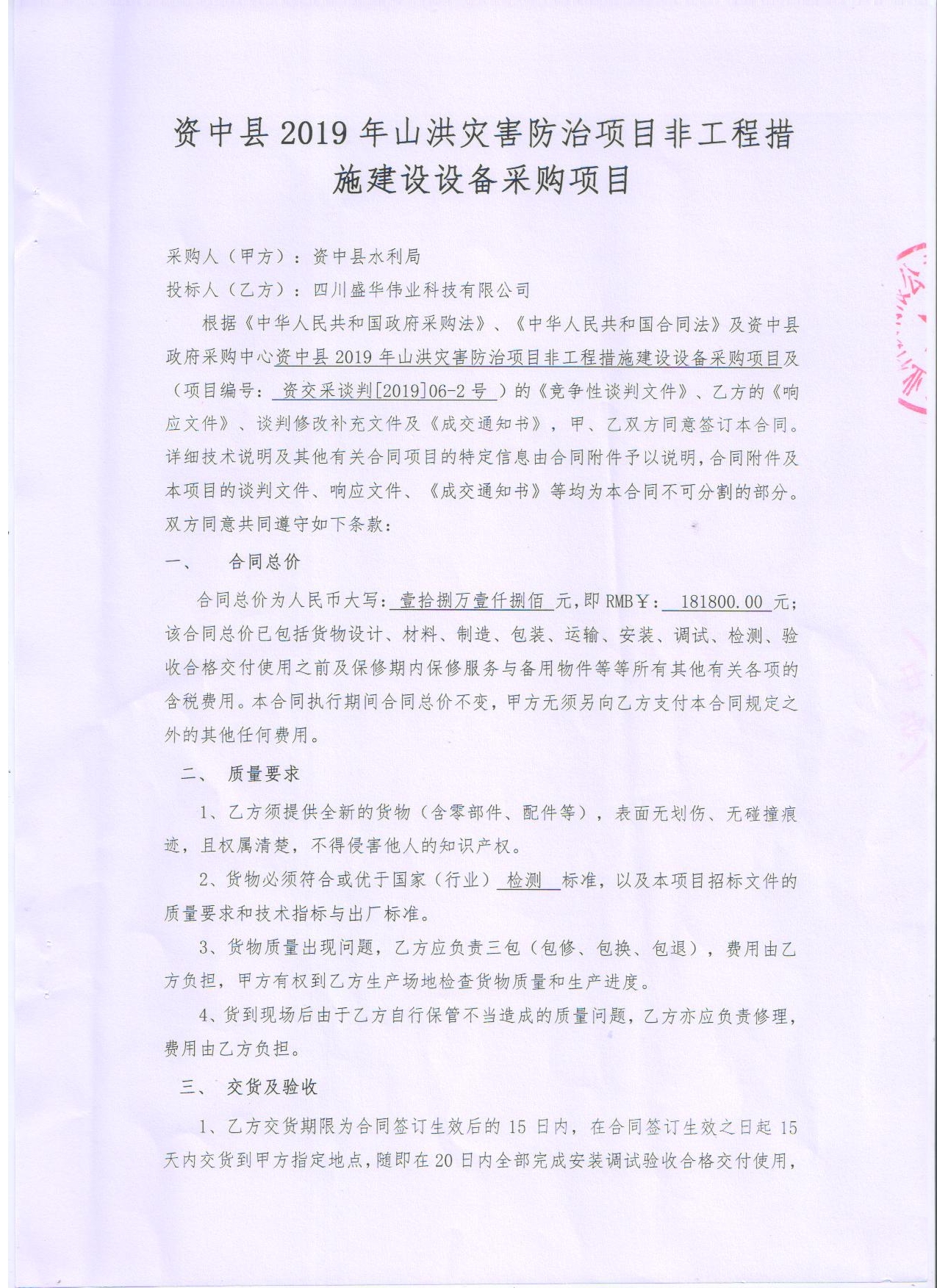 [合同备案]资中县2019年山洪灾害防治项目非工程措施建设设备采购项目