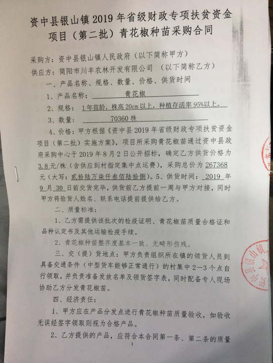 [合同备案]银山镇2019年省级财政专项扶贫资金项目(第二批)青花椒