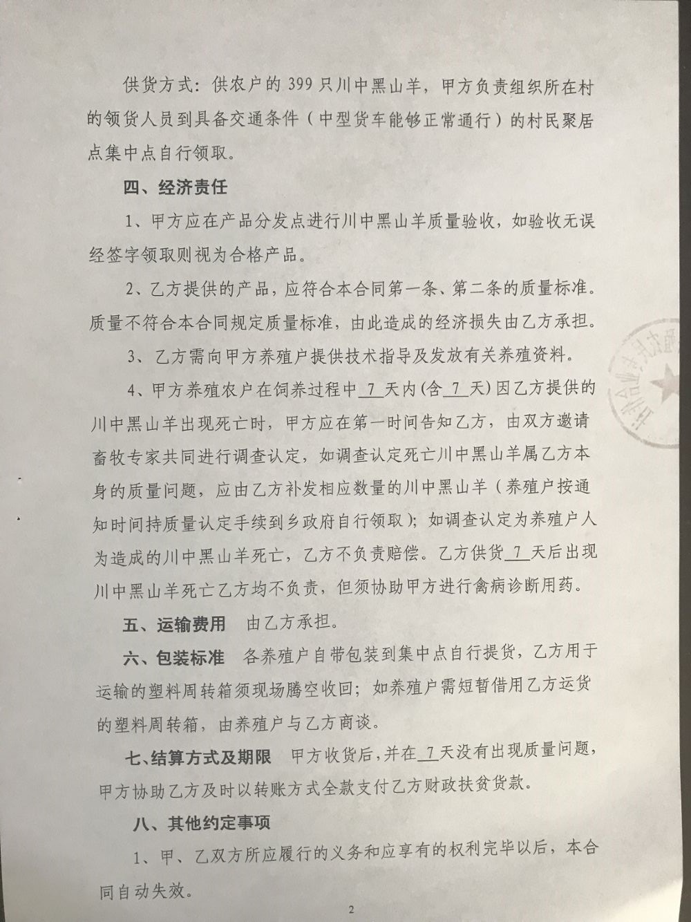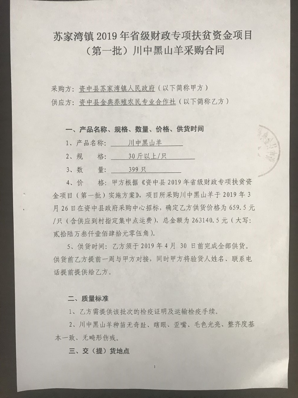 [合同备案]苏家湾镇2019年省级财政专项扶贫资金项目(第一批)川中黑山羊商品羊