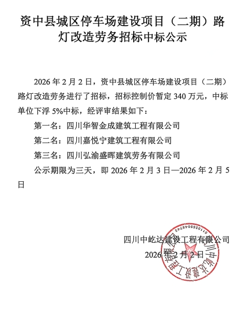 资中县水南片区城市更新补短项目(三阶段)机械租赁招标评标结果公示