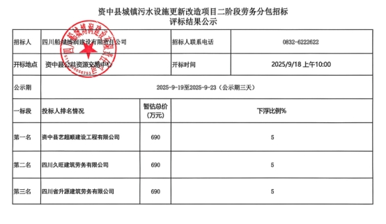 中标结果公示资中县乡村振兴示范镇基础设施提升改造项目劳务分包12-22标段