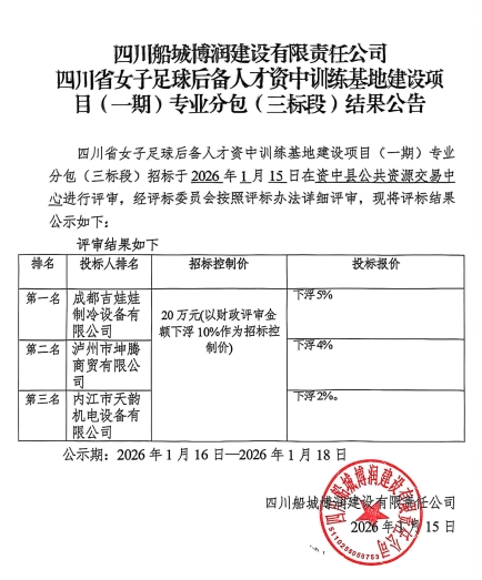 四川船城博润建设有限责任公司储备劳务服务(第二次)结果公示