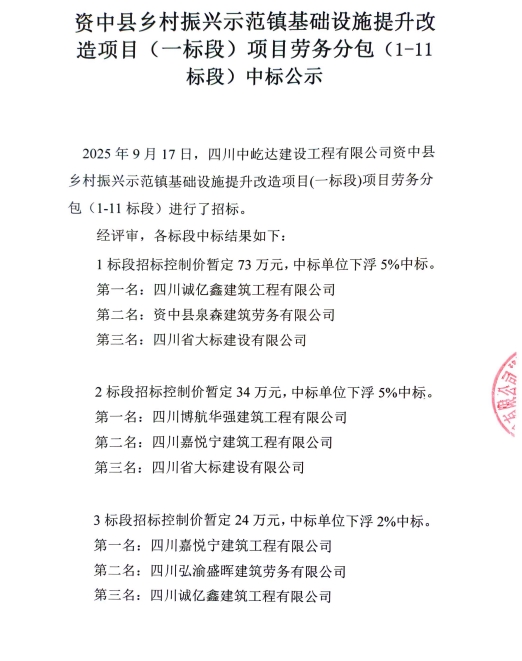 资中县智慧城市及市政基础设施智能信息化建设项目(二期)第一阶段二标段专业分包结果公示